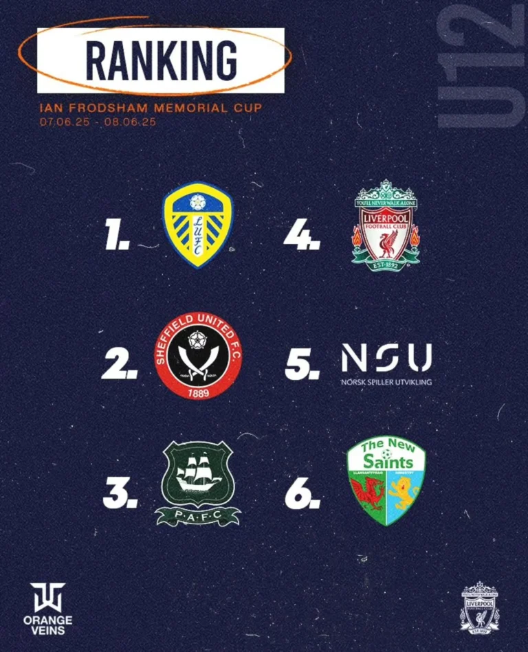 FINAL RANKING IAN FRODSHAM MEMORIAL CUP U12 First tournament at Liverpool FC Academy this year and what a success! Congratulations to Leeds United FC on winning the Ian Frodsham Memorial Cup U12 2025! A beautiful weekend to honour the life…